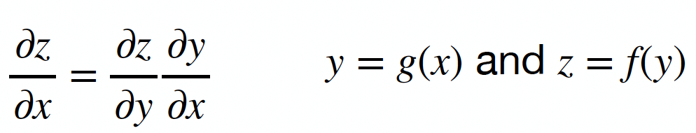 applying the chain rule of calculus to compute the partial derivatives of the error with respect to the weights.