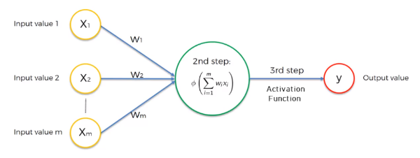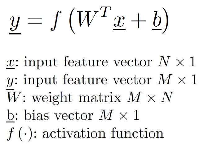 - each neuron performs a weighted sum of the previous inputs and then applies the non-linear activation function