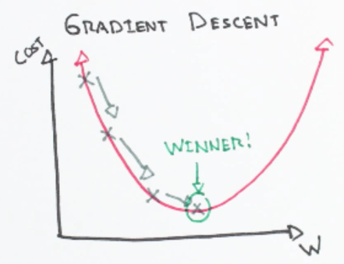gradient descent : optimization algorithm to find the gradient to minimize the error!!!