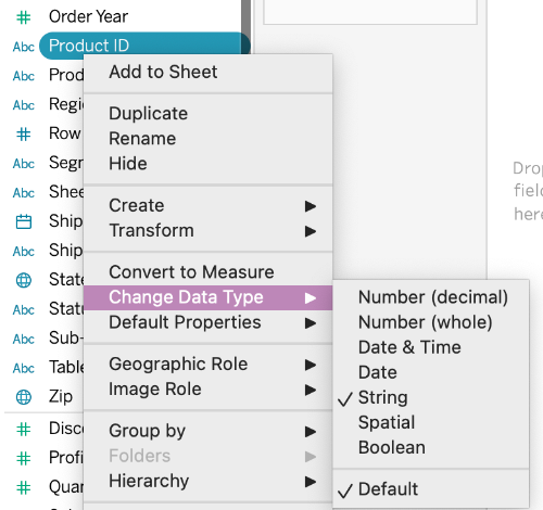 4) Change data type for a data field (number, date, string, Boolean, etc.)