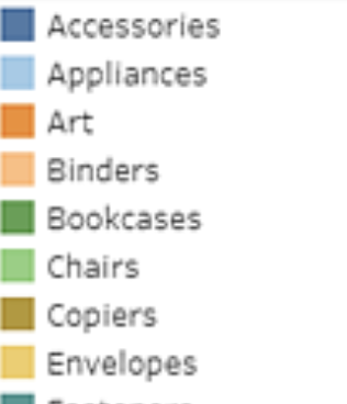 => When dragged to the color of Marks Card, Tableau displays both the categorical palette and a legend with a color for each value of the field.