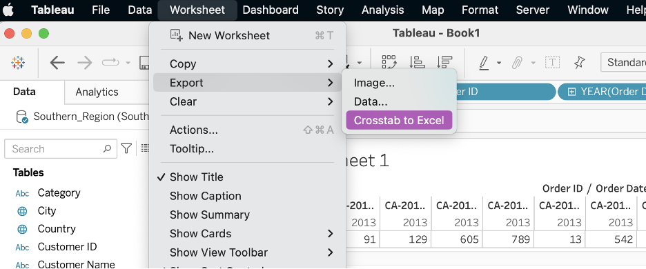 A) Select Worksheet > Export > 'Crosstab to Excel'