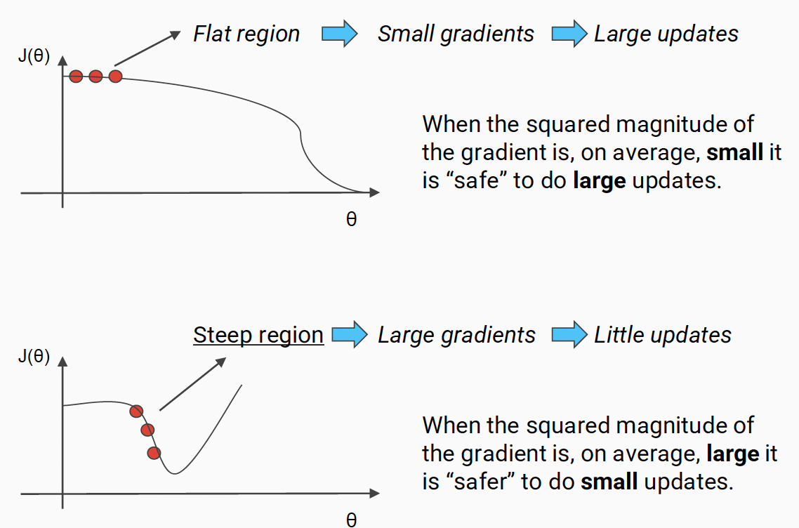 - NOT ONLY denpends on learning rate, but ALSO past gradients