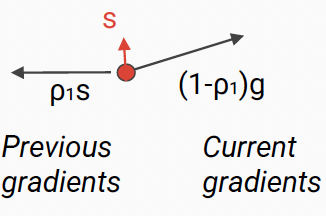 - With RMSProp, the direction of the update depends only on the current gradient (ρ1=0), while the step size also depends on the history of the squared gradient.