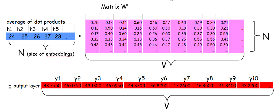 => V = size of vocab / N = size of embedding that what we want(=num of neurons in the hidden layer)