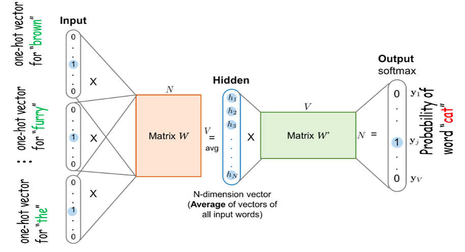 => CBOW(Continuous Bag of Word) model : guess the word in the middle