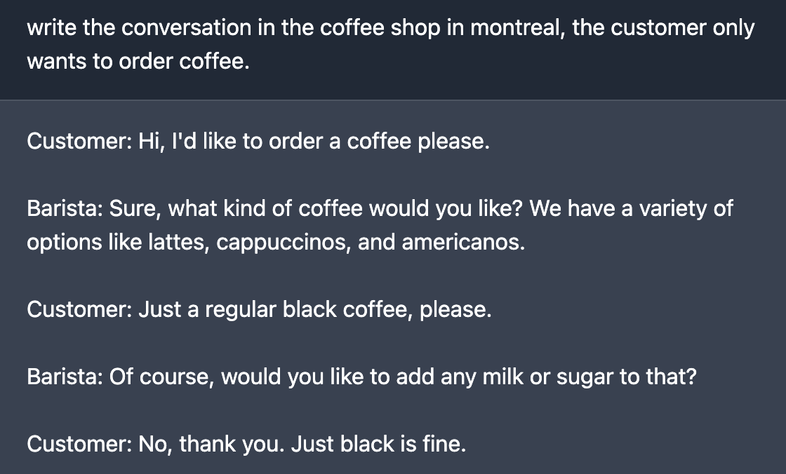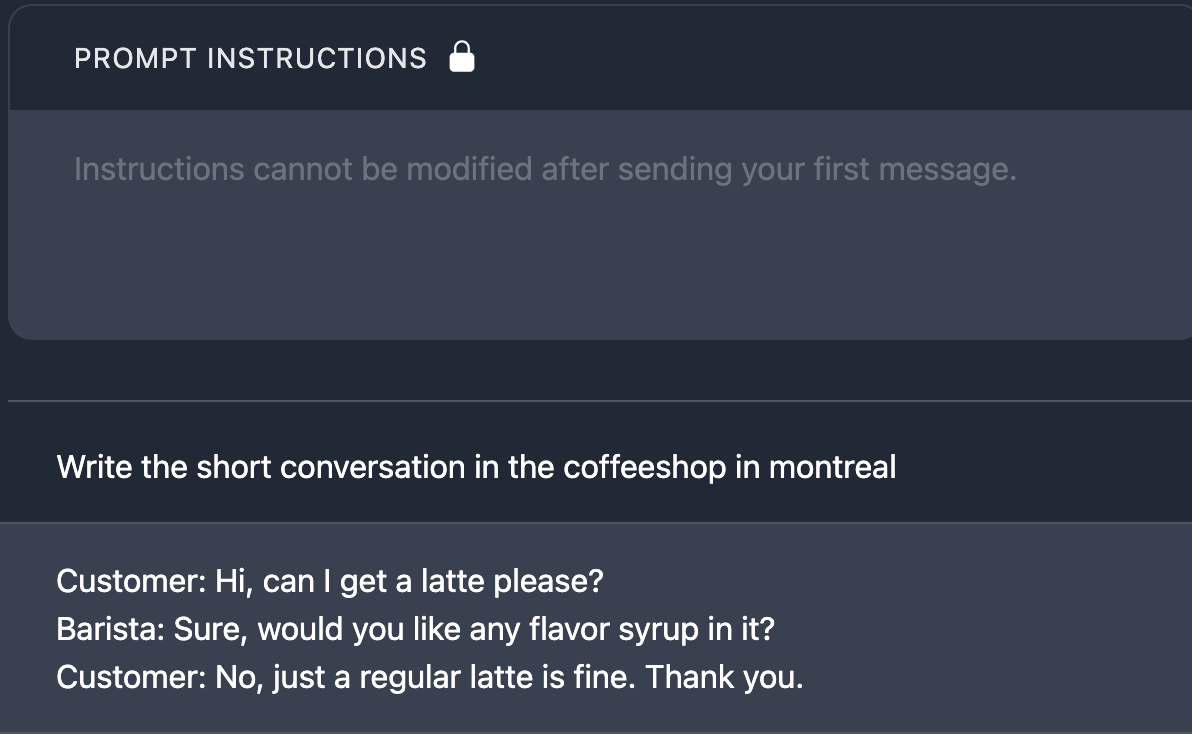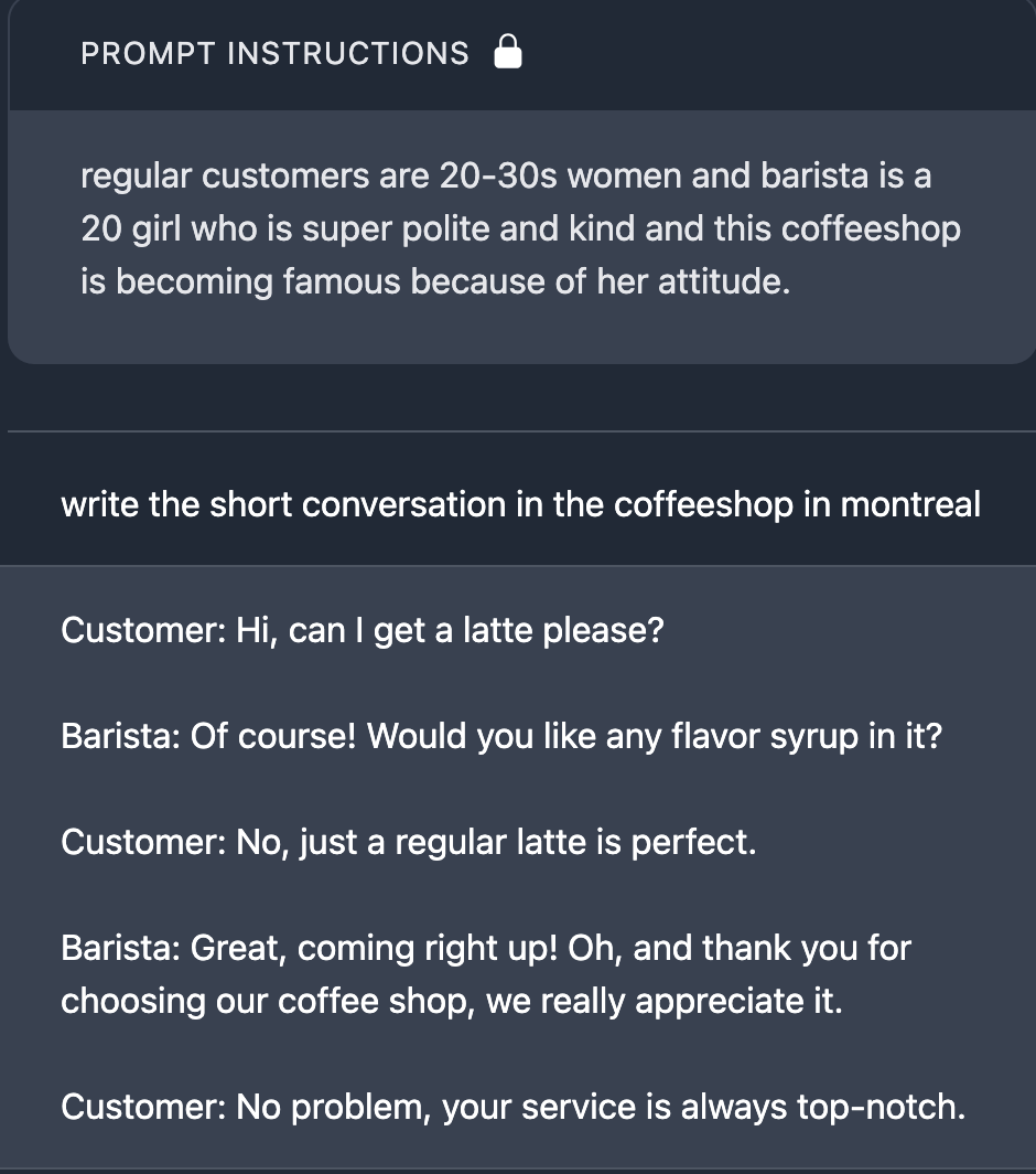 => Prompt Instruction 없이 매우 평범하고 짧은 대화가 생성됨