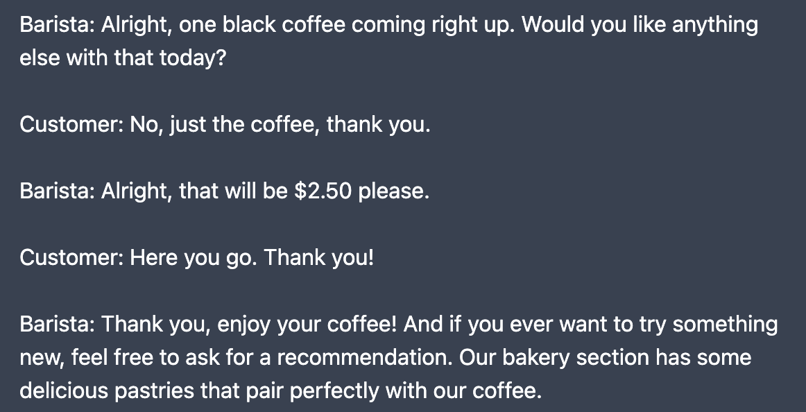 : 같은 prompt instruction이지만, prompt를 상세하게 설정(손님이 커피만 시키고 싶어하는 경우)