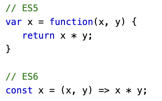 - function 키워드와 return 키워드 없이 간결하게 함수를 정의할 수 있음