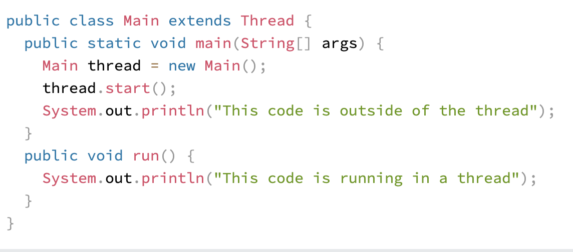 - If the class extends the Thread class, the thread can be run by creating an instance of the class and calling its start() method.