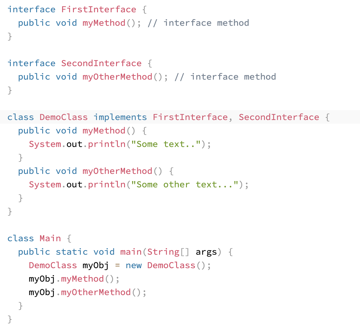 - 추상( abstract) 클래스와 같이 인터페이스는 objects를 생성하는데 쓰일 수 없다.