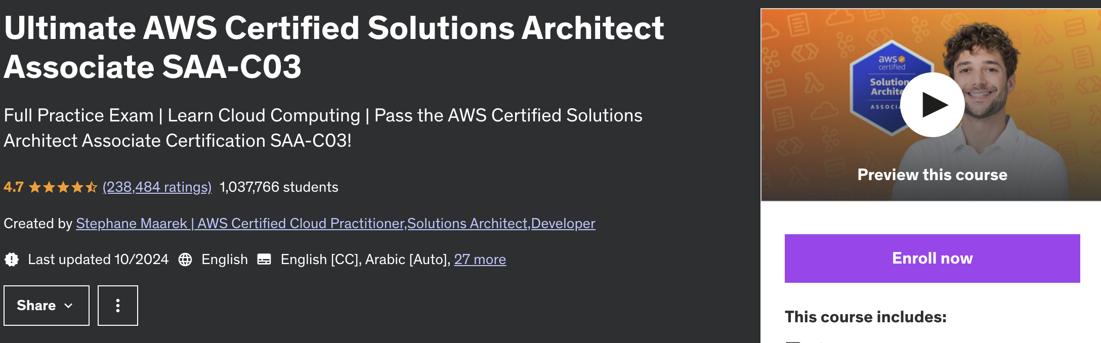 유명한 SAA - C03 udemy강의와 덤프문제 병행 예정!