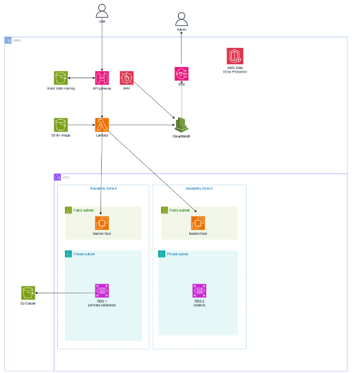 - dynamic 웹 호스팅의 경우에는 API Gateway가 Lambda 함수를 호출하고, Lambda는 Bastion 호스트를 통해 RDS 데이터베이스와 통신하여 데이터를 처리