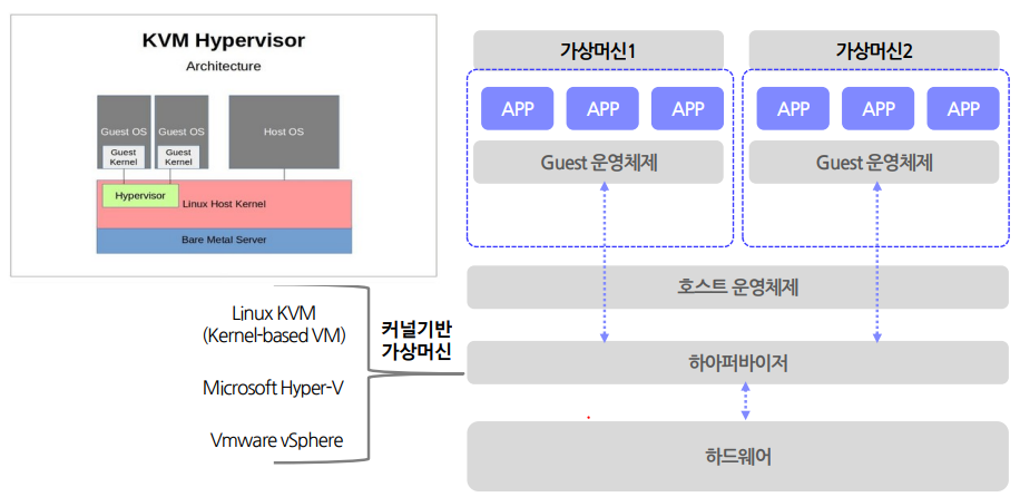 : 호스트 하드웨어에서 직접 가상화를 지원하여 Guest OS와 직접 통신하는 형태