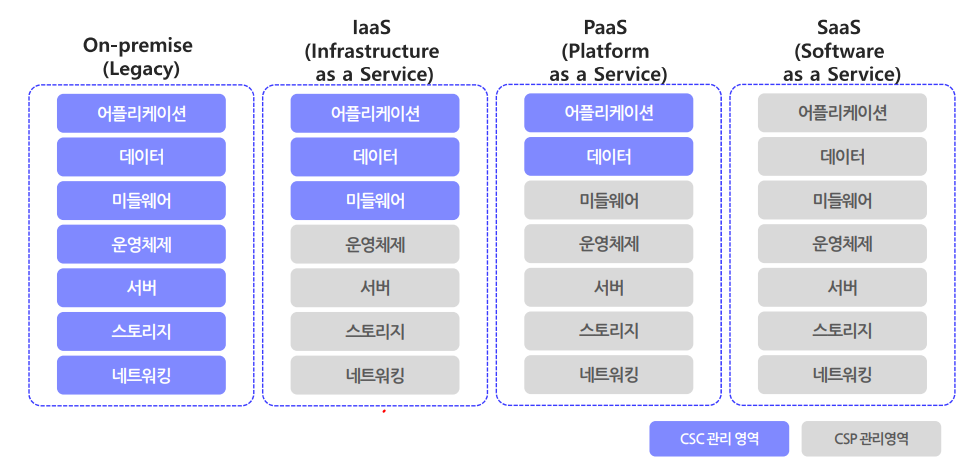 CSP(Cloud Service Provider: GCP, AWS, Microsoft Azure)가 소유하고 관리하는 원격 서버에 위치한 컴퓨팅, 스토리지, 네트워킹 서비스를 포함한 공유 리소스의 가상 풀에 액세스하기 위해 사용한 만큼 비용을 지불