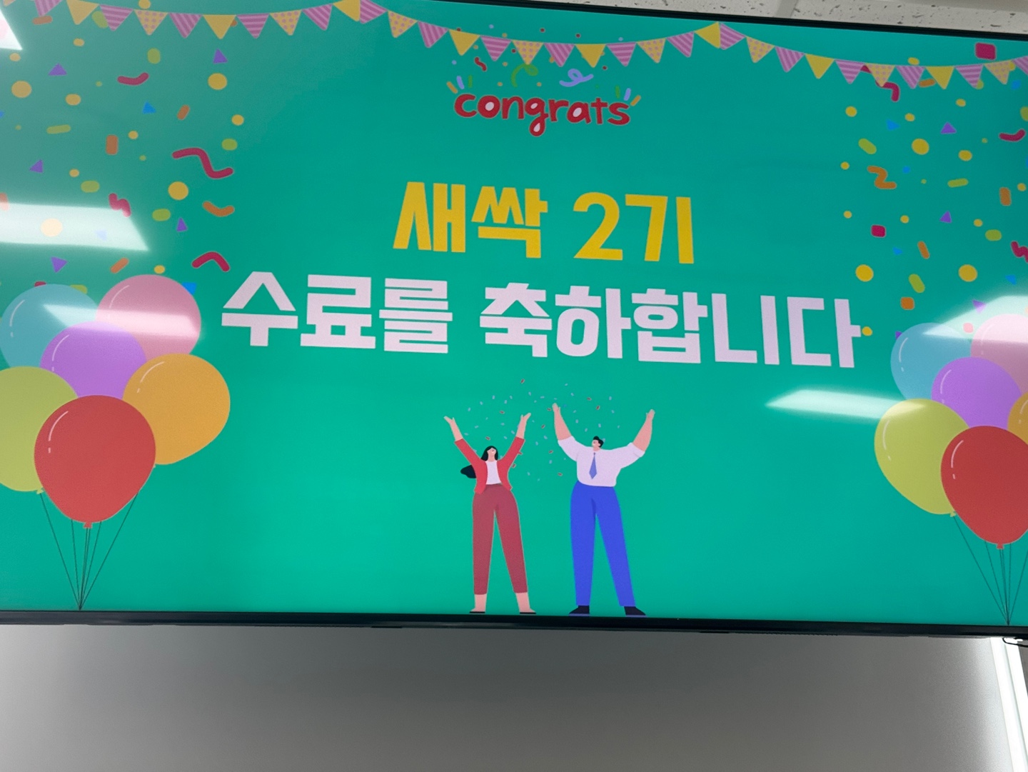벌써 수료라니..! 1~2월 동안 거의 매일 새싹캠퍼스에 나와서 공부하고 프로젝트 하다보니 더 빨리 시간이 흘러간 느낌이였다.