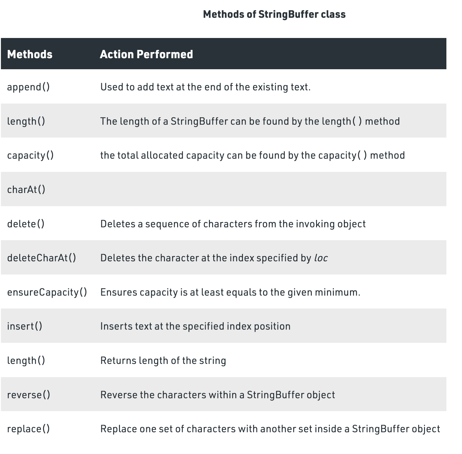 - java.lang.StringBuffer extends (or inherits from) Object class