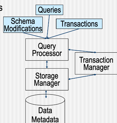 - (high-level) Programming interface : gives users the ability to create, query, and modify the data
