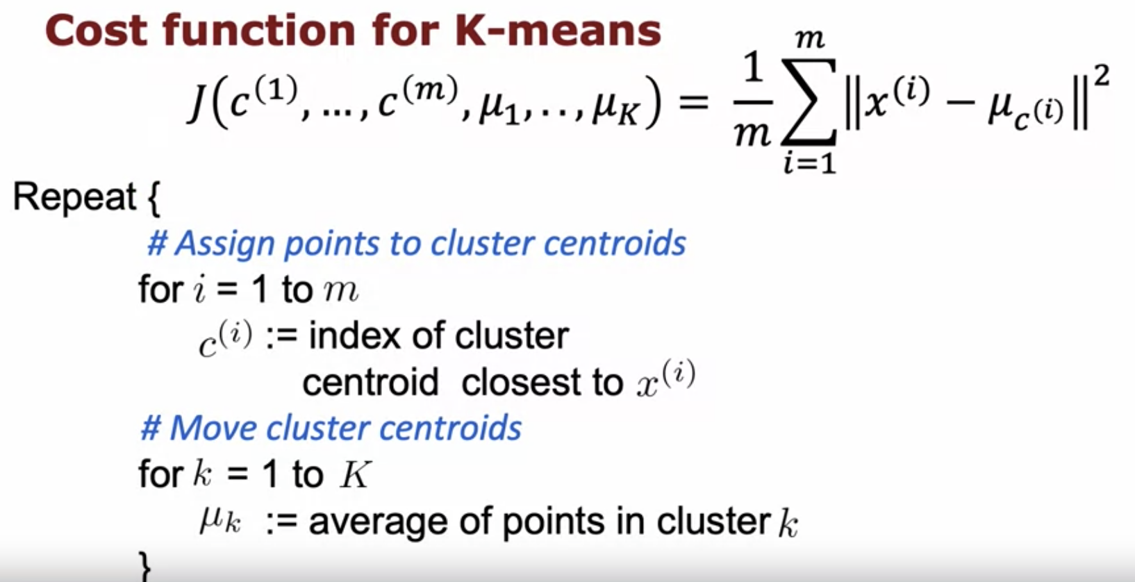 ---> describes which centroid example() is assigned to. If , then would be one of 1,2 or 3 assuming counting starts at 1.