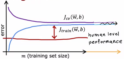 If a leaning algorithm suffers from high bias, getting more training data wil not help much!